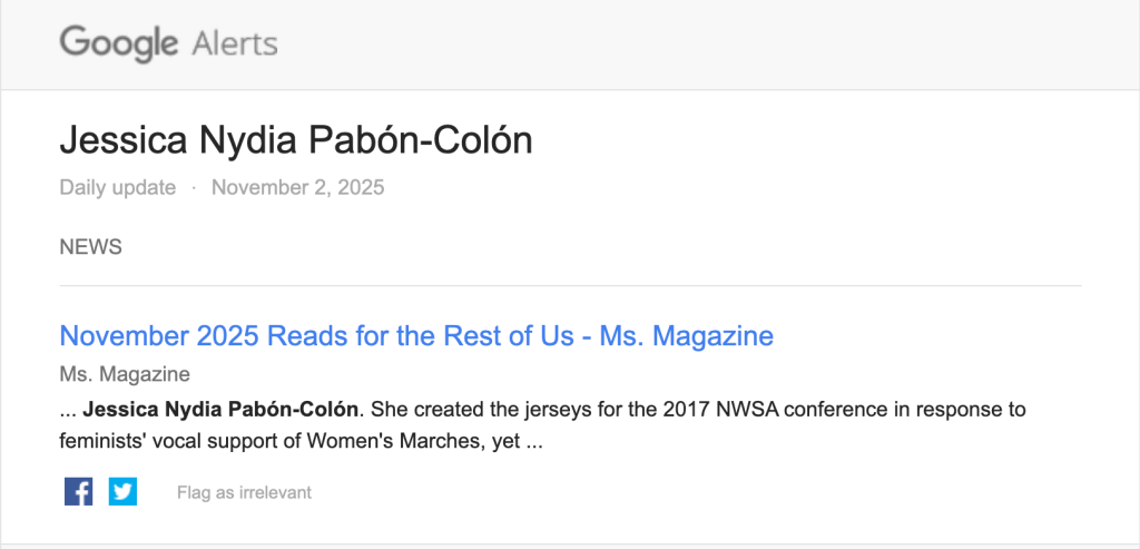 When I saw this google alert and read the way Porque Estamos Aquí is featured by the lovely Karla Strand, I cried. I held my chest. I pulled out my stained and raggedy FPR t-shirt and said to myself: look, Jess of 2017, look what you’ve accomplished. I am proud of us.